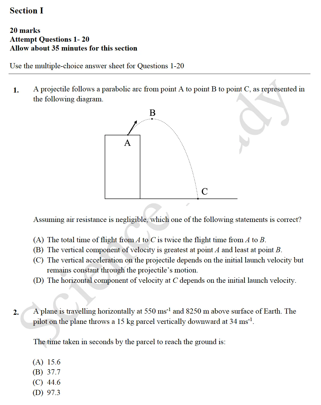 This digital exam paper examines content in the NESA NSW HSC Physics curriculum. All questions contained in the exam are created by Science Ready to accurately reflect real HSC exams.